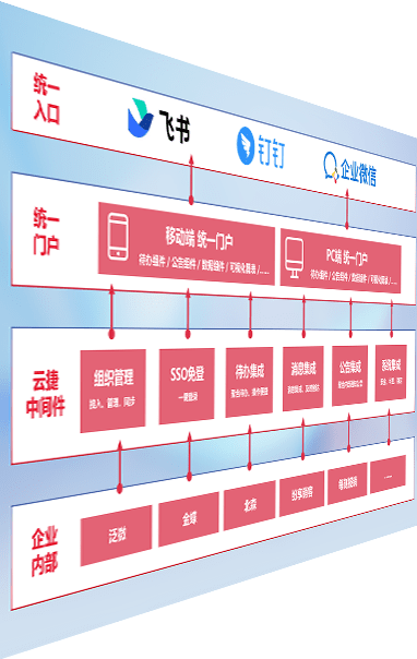 对协作平台提供支持服务,,支持企业应用与协作平台对接,,,,包含组织同步、、消息集成、、、待办集成等。。。。支持目前主流的协作平台:钉钉、、、企微和飞书。。。